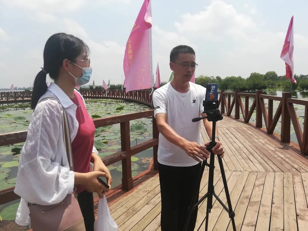 队员王悦来到河南省淮阳县龙湖国家湿地公园,对旅游直播的运用情况和效果进行调研。通过对当地商铺的采访调查发现,在淮阳赏荷旅游月启动后,当地游客流量迅速回升,商品销售营业额也显著提高。不过由于商铺所售卖的商品同质性较高,缺乏地区特色,因此商铺们未曾采用旅游直播进行线上销售。赏荷旅游月启动仪式当晚,腾讯大豫网、网易直播、淮阳电视台和云上淮阳APP均对本次开幕式进行了现场直播,本届荷花节收获了前所未有的关注,吸引了大批游客前往。队员认为这是旅游直播的一个发展机会,能扩大旅游直播在当地的影响力。