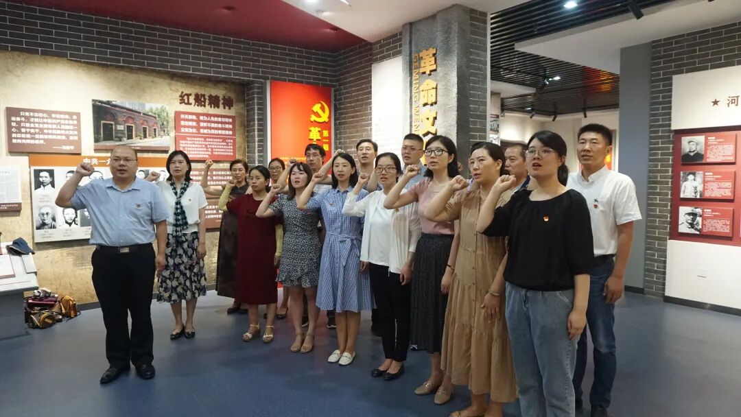 6月21日,旅游与会展学院党委在郑东校区校三大文化教育基地开展党史学习教育主题党日活动,学院全体教职工党员和师生代表参加活动。