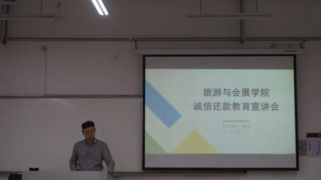 5月14日,旅游与会展学院在教学科研楼111教室举办毕业生诚信还款教育宣讲会。学院资助专管员刘好强担任主讲人,进行过高校贷款及生源地贷款的毕业生到场参加。