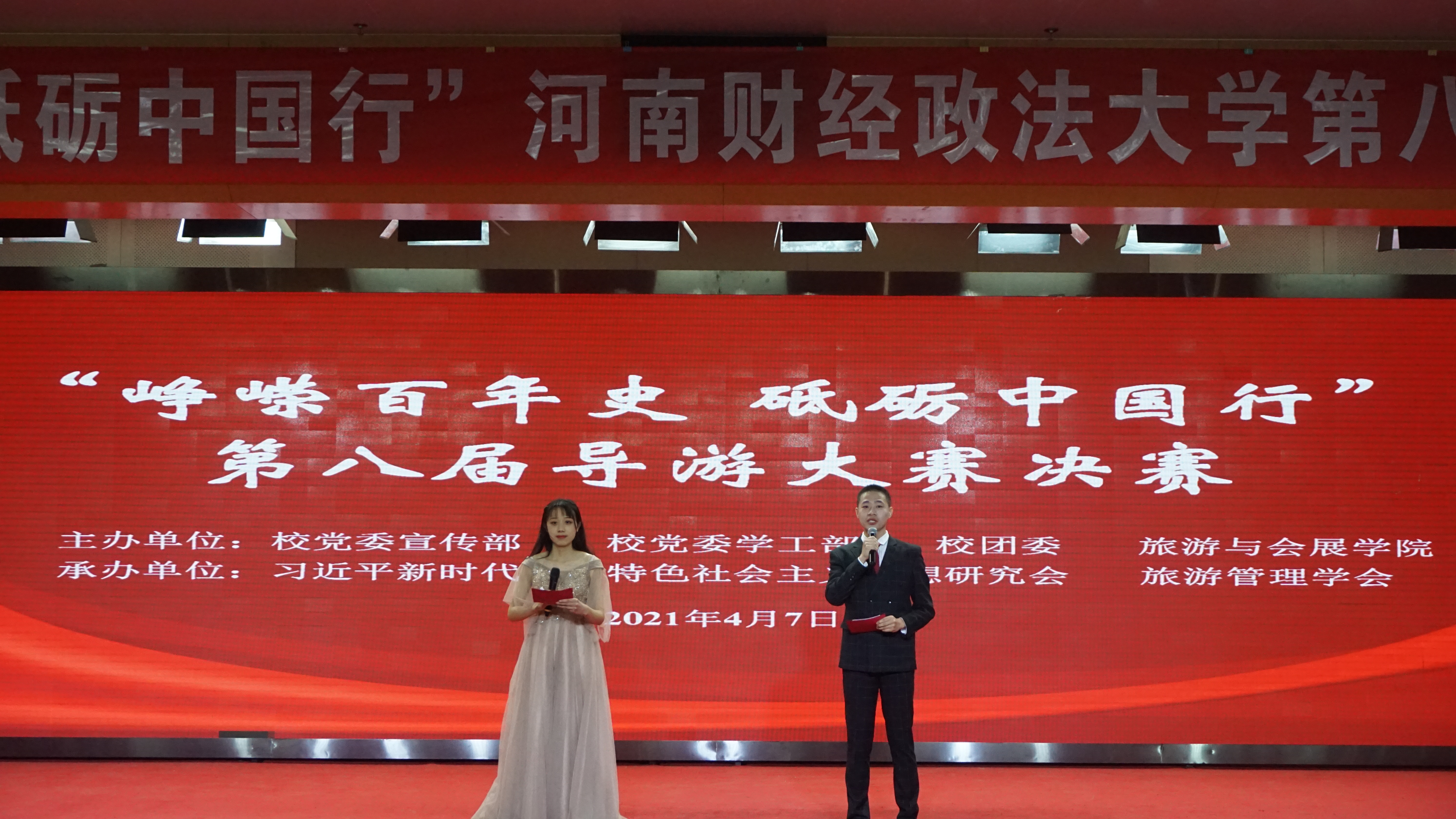 4月7日,由williamhill英国党委宣传部、党委学工部、校团委、旅游与会展学院主办,习近平新时代中国特色社会主义思想研究会、旅游管理学会承办的我校“峥嵘百年史,砥砺中国行”第八届导游大赛决赛在学校郑东校区图书馆报告厅举行。