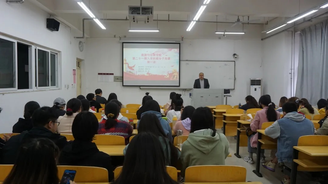 3月11日,旅游与会展学院在教学科研楼105教室召开第二十一期入党积极分子党课培训第一讲,学院党委副书记徐斌担任主讲人,第二十一期入党积极分子到场参加。