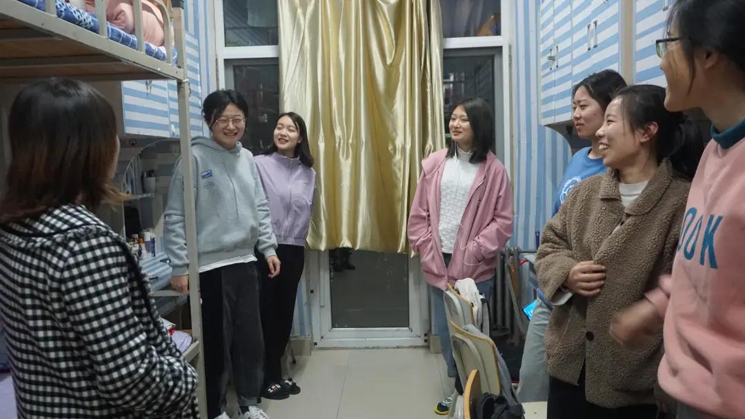 在走访过程中,蔡萌详细了解学生当前的学习生活情况及返校感受,叮嘱同学们不可有懈怠心理,要尽快从假期的状态调整过来,以崭新的面貌投入到学习生活中去。她向大家仔细介绍了考研方面的知识,帮助同学们了解考研情况,选择正确的专业学习方向。她还鼓励大家主动参加集体活动,提高综合素质,向德智体美劳全面发展。此外,她要求每个同学必须严格遵守疫情防控期间的校园管理要求,做好自我管理和个人防护,注意宿舍卫生整洁。