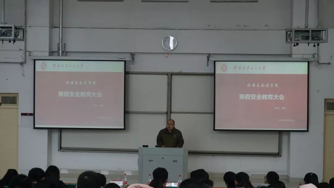 1月2日,旅游与会展学院于教学科研楼209教室召开寒假安全教育大会,学院党委副书记徐斌出席,主要学生干部和2019级全体新生到场参加。