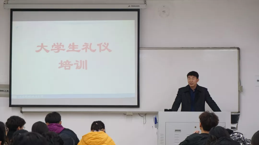 11月28日中午,旅游与会展学院于教学科研楼105教室举行青马工程之礼仪培训。学院会展经济与管理教研室主任何勋担任主讲人,学院主要学生干部到场参加。