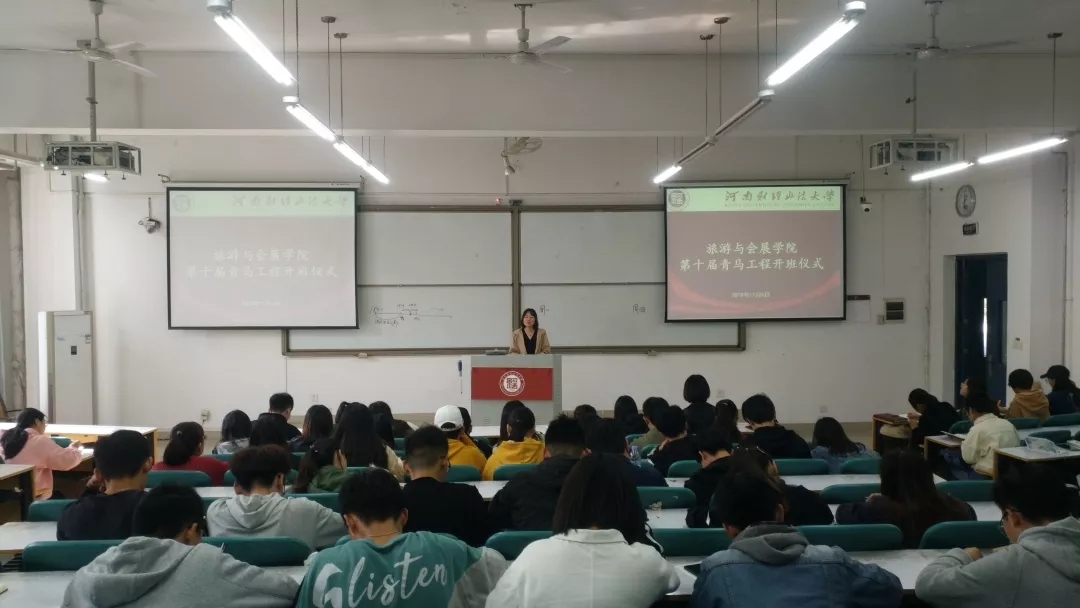 11月5日,旅游与会展学院在第一教学楼118教室举行第十届青马工程开班仪式,学院团委书记蔡萌出席,主要学生干部到场参加。