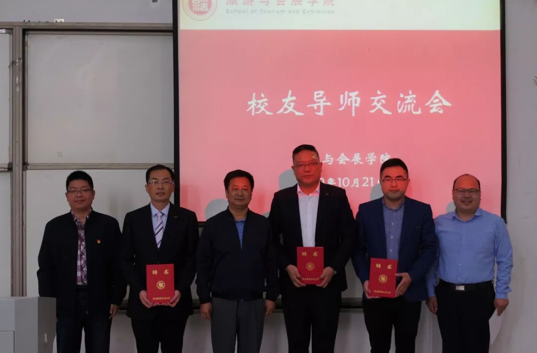 10月21日,旅游与会展学院在教学科研楼209教室举行校友导师交流会暨校友导师聘任仪式。学院1997级校友何军辉、2000级校友徐钧栋、2008级校友朱明宇及学院党委书记汪国强、党委副书记徐斌、副院长徐贵宏出席,2019级学生到场参加。