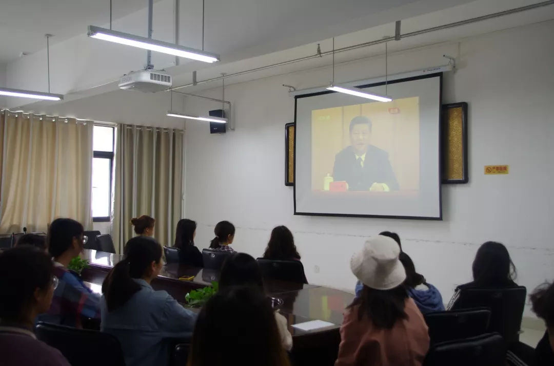 4月30日,我院于教学科研楼875教室组织学生观看纪念五四运动100周年大会直播,学院团委书记蔡萌、团委副书记马超出席会议,主要学生干部与部分学生到场参加。