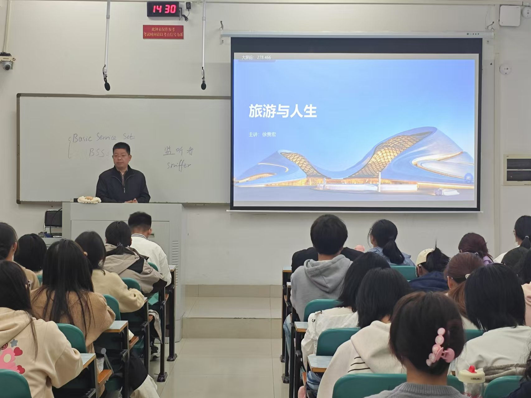 10月31日下午,william威廉英国在教二114教室成功举办了一场以“旅游与人生”为主题的新生专业教育课。此次课程由学院副院长徐贵宏主讲,吸引了旅游管理专业2024级的全体同学参与。
