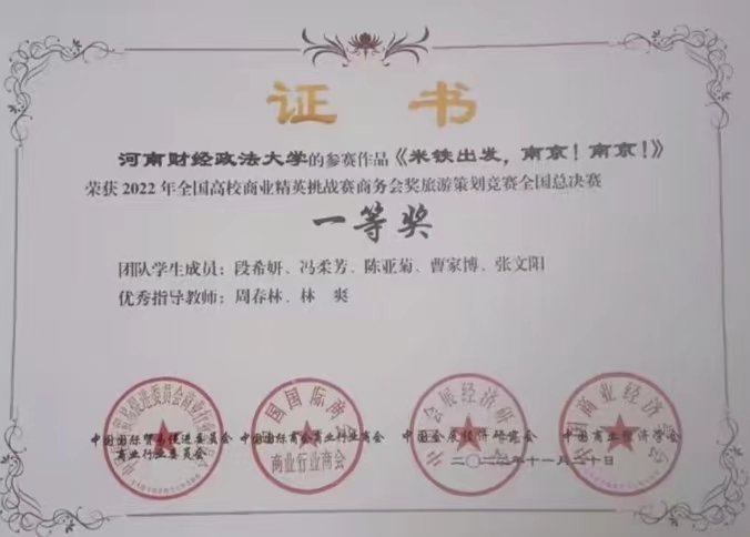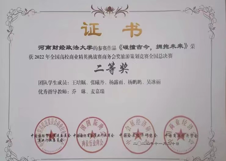11月26至28日,2022年全国高校商业精英挑战赛商务会讲旅游策划竞赛在线上顺利进行,我院的“奇迹再现队”和“汪汪立大功队”分别荣获国家级一等奖、二等奖。