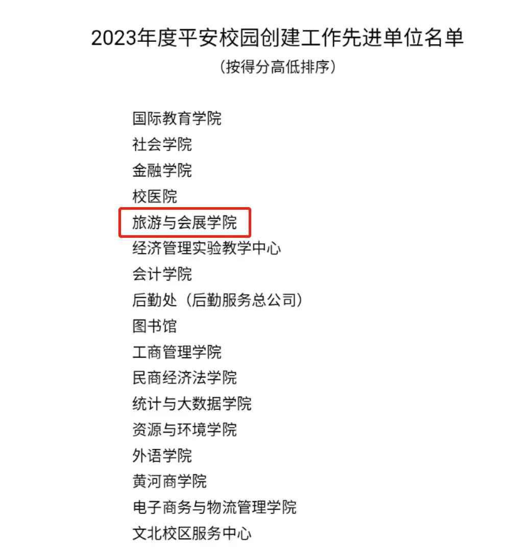 旅游与会展学院所获集体荣誉如下: