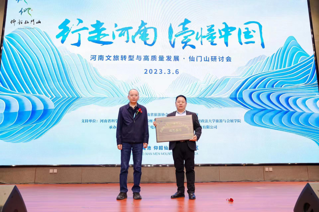 我院院长赵现红就仰韶仙门山文旅融合高质量发展提出了独到的见解,并就学院与景区共建实习基地、研究基地等达成共识,现场授牌。