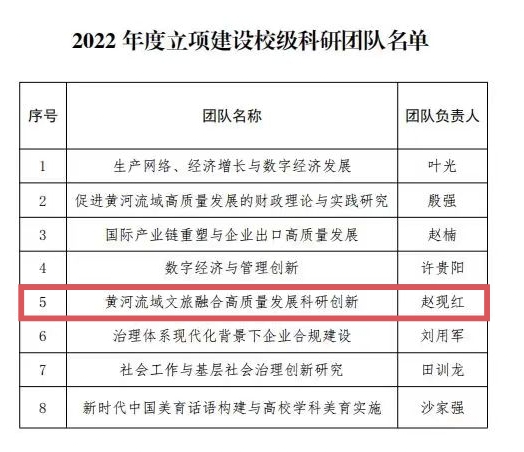 《黄河流域文旅融合高质量发展科研创新》科研团队主要以我院科研骨干为团队成员,逐步形成了一支职称职级高、学历层次高、年龄结构合理的科研团队。该项目获批立项后,学院将继续坚持人才培养的科学发展和团队建设的开放性原则,不断提升教师科研创新意识和竞争实力,增强团队协作能力;根据学校科研团队建设管理办法,进一步完善科研计划,加快落地科研任务实施,探索建立完善的内部管理制度;为区域发展及社会和企事业单位提供指导及专业技术支持和服务;打造在具有区域学术影响力和学术地位的优秀科研团队。