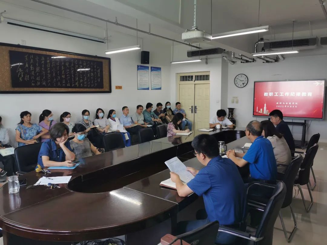为了增强全院教职工的组织纪律意识,根据学校人事处《关于进一步严肃教职工工作纪律的通知》精神,9月5日,旅游与会展学院组织召开了教职工“工作纪律”教育专项活动学习。会议由院长赵现红主持,学院全体教职工参会。