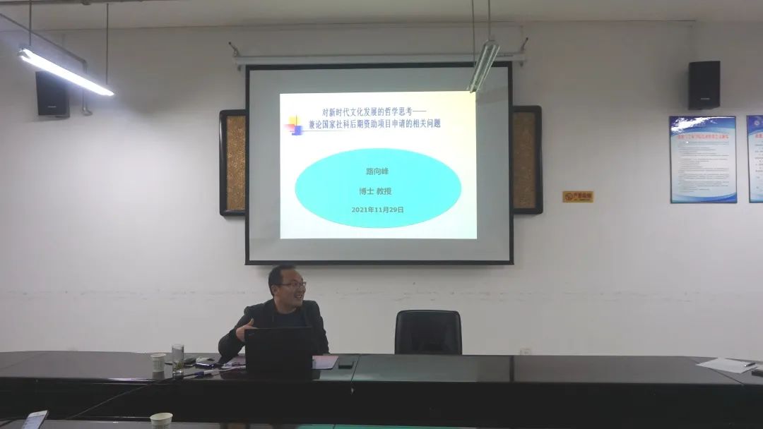 11月29日下午,教科楼875会议室,我校马克思主义学院路向峰博士为我院师生做了一场关于国家社科基金后期资助项目申报经验的学术报告。学院领导、科研团队成员和研究生参加了报告会,会议由院长赵现红教授主持。