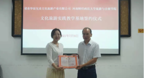 仪式上,旅游与会展学院聘请曹燕为学院外聘教授,聘请张海燕、王焕、周凯为学院校外导师。赵现红和曹燕代表双方共同签订共建文化旅游实践教学基地战略合作协议。