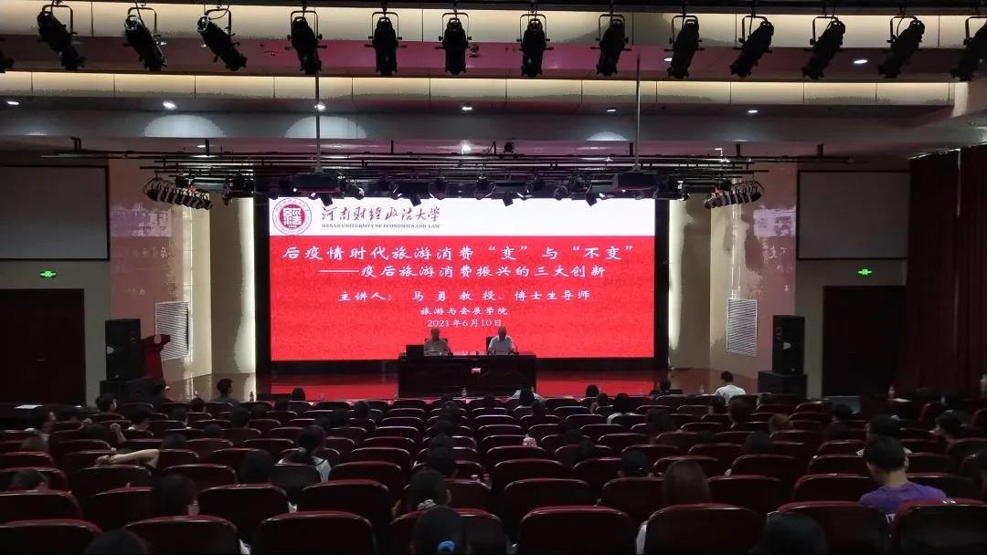 6月10日,旅游与会展学院邀请中组部国家高层次人才“特支计划”领军人才、国家教学名师、教育部旅游管理教指委副主任、湖北省旅游管理教指委主任,中国旅游研究院生态旅游研究基地主任兼首席专家,中国会展经济研究会创会副会长,湖北大学旅游发展研究院院长马勇教授在东配楼202报告厅为我院师生作关于“后疫情时代旅游消费变与不变”的报告。院长赵现红教授主持报告会,全院师生通过线上线下参加了会议。